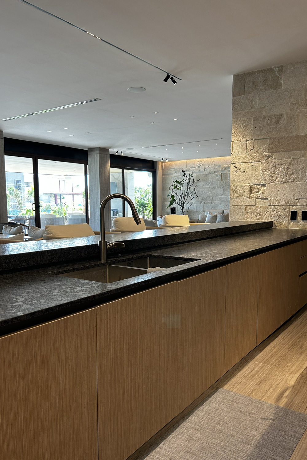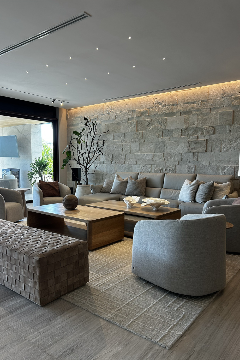• Acabados premium en piedra, madera, iluminación arquitectónica y carpinterías a medida.