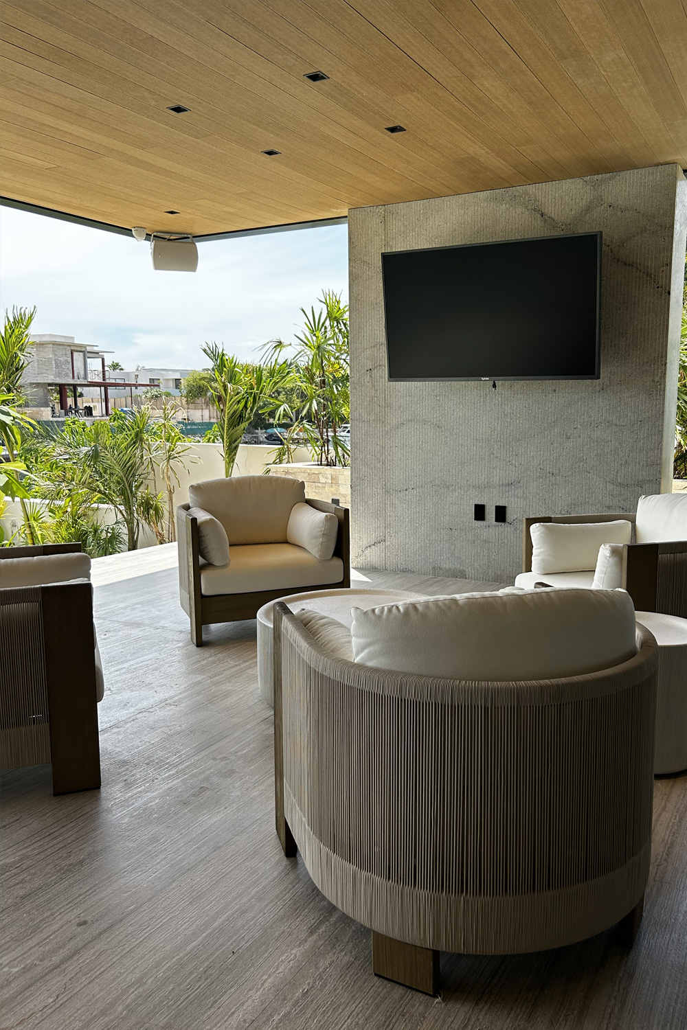 • Terraza exterior equipada, con vistas a la vegetación tropical y espacios diseñados para convivir al aire libre.