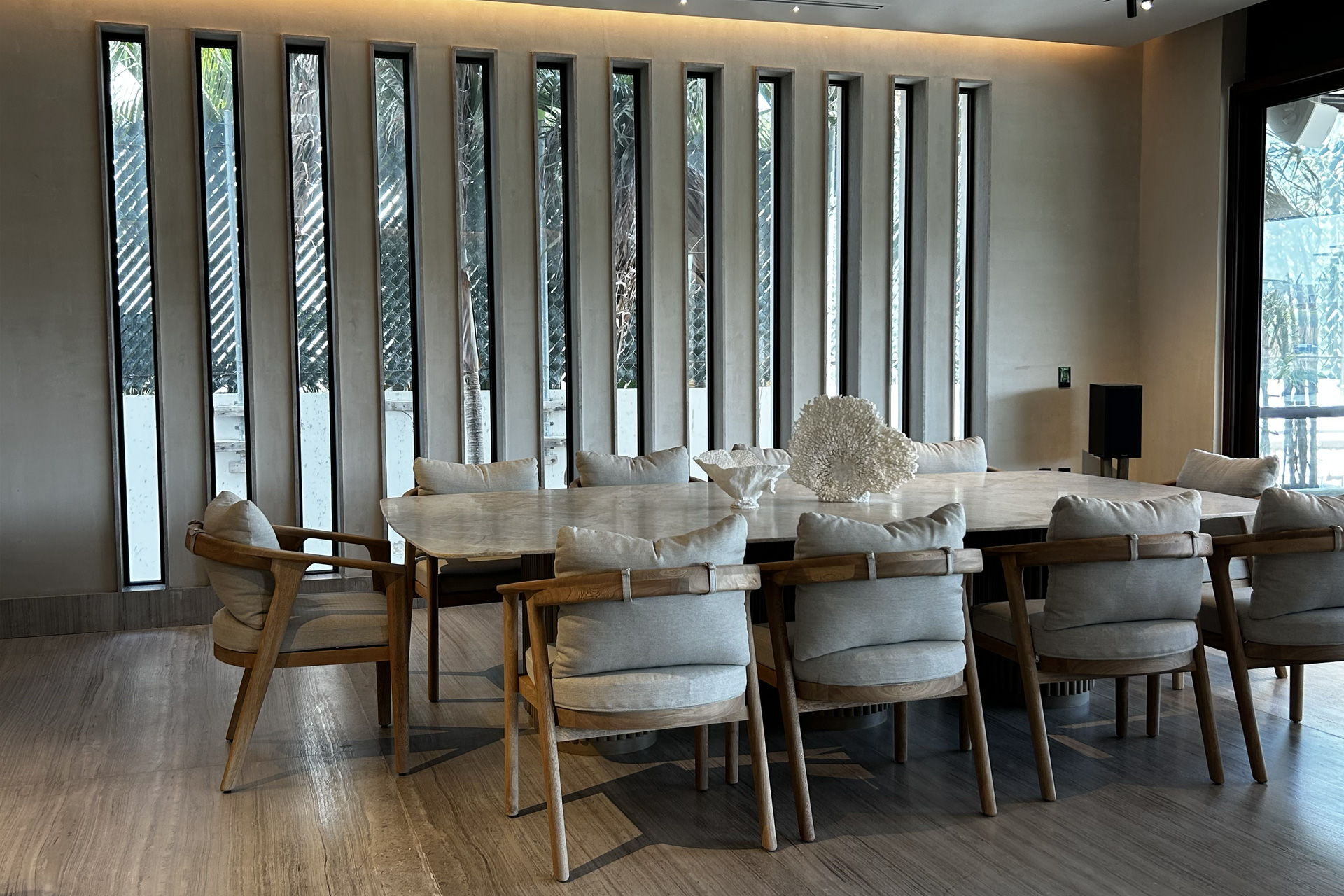 Residencia de lujo contemporáneo ubicada en una de las zonas más exclusivas de Cancún. Su diseño cálido–moderno, enmarcado por la vegetación tropical y una arquitectura de líneas limpias, crea un ambiente de sofisticación relajada perfecto para vivir o vacacionar. Los interiores combinan materiales naturales, iluminación cuidada y una integración impecable con el exterior, logrando un hogar que se siente abierto, amplio y en armonía con el entorno.